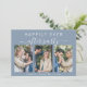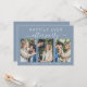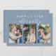 O elopete azul empoeirado ou o anúncio privado de casamento e o convite de recepção. A frente apresenta uma colagem de 3 fotos e "Felizmente Sempre Depois da Festa" em uma simples tipografia branca e um roteiro branco-na moda com pestanas, seus primeiros nomes se juntaram por um coração e sua data de casamento ou recepção. No verso, personalize seu anúncio e convite e adicione seus nomes em um script semelhante a assinatura.