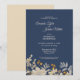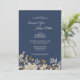 Este convite de recepção de casamento Boho Outono Azul Empoeirado combina um clima antigo com um visual retrô de flores silvestres boêmio. As flores silvestres bege neutras e elegantes sobre o fundo azul empoeirado e azul-marinho, com sua tipografia caligráfica sofisticada, permitem um tema de celebração de casamento formal, mas selvagem e floral, com estilo vintage.