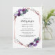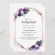 Nossa coleção floral roxa é perfeita para criar seu convite para uma recepção de casamento. Apresentando uma caligrafia negra moderna, com quadro geométrico em rosa de ouro sobre fundo branco, isso é perfeito para uma festa de elopeamento poste. DICA: Cartões RSVP, convite para casamento, Salve as Datas e muito mais estão disponíveis neste pacote de casamento organizado para sua conveniência