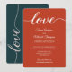 Paleta de cores de casamento elegante e sofisticada em tons terrosos quentes, com laranja queimado, convite de recepção de casamento Elopement verde. Este design apresenta um moderno script de caligrafia "Love". Personalize este convite de recepção de casamento com os nomes da noiva e do noivo e todos os detalhes da festa sobre o Elopement e a recepção de casamento. Inclua também um site de casamento para RSVP. Este design de layout chic e elegante é fácil de personalizar. Para um casamento de outono.