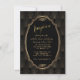 Convite de Casamento Vintage Art Déco Great Gatsby dos Anos 20. Um design de cartão inspirado nos anos 1920 preto e dourado apresenta forma oval vintage com folha dourada falsa e ornamentos, lindo estilo Art Déco como fundo. Use a ferramenta Personalizar para adicionar suas informações. Veja também minha Coleção Charmosa Great Gatsby Art Déco. A década de 1920 foi uma época de proibição, gângsteres, festas clandestinas, música jazz e garotas flapper.