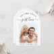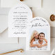 Elegante elopemento em forma de arco ou anúncio privado de casamento e convite de recepção casual com sua foto, "Nada de Rico Apenas Amor" em uma mistura de simples letras e um roteiro de chic com baloiços, e seus primeiros nomes e data de casamento ou recepção se juntaram a um coração. No verso, personalize seu anúncio de casamento e seu convite de recepção e adicione seus nomes em um script semelhante a assinatura.