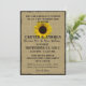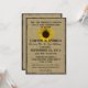 Convites rústicos estilo girassol para uma recepção de casamento casual estilo churrasco. Lindos girassóis sobre sacaria, convite totalmente impresso.