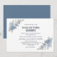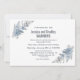 Uma elegante celebração de recepção pós-casamento em azul empoeirado com folhas de samambaia e margaridas.