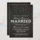 Este lindo design de convite para recepção de casamento da The Spotted Olive™ apresenta um fundo com aparência de quadro-negro com uma imagem de pedras preciosas cintilantes que fluem do topo e a palavra "CASADOS" preenchida com uma imagem de brilho prateado. Personalize facilmente com seus detalhes! POR FAVOR, OBSERVE: ESTE DESIGN APRESENTA APENAS UMA IMAGEM IMPRESSA DE BRILHO; NÃO HÁ BRILHO FÍSICO USADO OU INCLUSO; NÃO HÁ EMBELEZAMENTOS. Copyright 2013-Presente | The Spotted Olive™ | Todos os Direitos Reservados