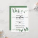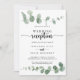 Este convite de recepção de casamento com eucalipto é perfeito para uma festa moderna pós-fuga. O design apresenta ramos e folhas de eucalipto botânico elegante desenhado à mão com aquarela.