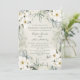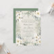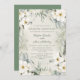Convite de recepção de casamento elegante com flores brancas pintadas à mão e folhas de sage verde. Entre em contato para obter ajuda com suas personalizações ou para solicitar produtos Zazzle adicionais correspondentes para sua festa.