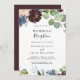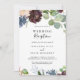 Este convite de recepção de casamento com flores e folhagens de borgonha é perfeito para uma festa pós-casamento moderno. O design boho elegante apresenta flores em tons de azul-marinho aquarela, rosa beije e vinho com detalhes artísticos a lápis.