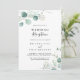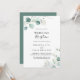 Este convite de recepção de casamento com folhagem verde de eucalipto de verão é perfeito para uma festa moderna após um casamento íntimo. O design apresenta belas folhas de eucalipto verde pintadas à mão em aquarela, inspirando charme natural.