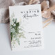 Nós projetamos este convite de recepção de casamento com folhagem e folhas de ouro para completar sua recepção boho simples, porém elegante. Ele apresenta folhas modernas de eucalipto verde e branco, folhagem de samambaia, uma flor suculenta e folhas mínimas de folha de ouro. Esses elementos dão a sensação de uma floresta encantada em aquarela caprichosa, perfeita para qualquer casamento rústico e boêmio! Sinta-se à vontade para personalizar e torná-lo seu; além disso, sinta-se à vontade para navegar pelo restante da coleção para encontrar produtos correspondentes e coordenados!