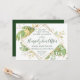 Este convite de recepção de casamento com tema tropical elegante apresenta folhagens exóticas com detalhes em dourado. Uma moldura geométrica moderna dourada destaca o texto em verde escuro. Salpicos dourados acentuam o desenho botânico e trazem um pouco de capricho sofisticado para o convite. "Felizes para Sempre" está destacado no meio do convite. Este é o anúncio de casamento e convite de recepção perfeito para qualquer casamento com tema tropical.
