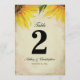 Uma linda decoração de recepção de casamento com girassóis. Números de mesa com um bonito desenho floral amarelo na frente e atrás, perfeito para casamentos em celeiros, casamentos em jardins e temas de casamento com girassóis. Cada número de mesa deve ser personalizado e adicionado individualmente ao seu carrinho de compras. Os cartões de número de mesa são frente e verso. Certifique-se de alterar o texto em ambos os lados. Criado por Victoria da VG Invites. Para ver mais da decoração de recepção de casamento com girassóis de Victoria, visite www.zazzle.com/vginvites