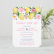 (Casamento) convite apenas para a recepção com limões aquarela e flores cor-de-rosa, complementado por azulejos azuis e brancos no verso. Isso foi projetado para convidar os convidados para uma grande celebração de casamento, tendo tido apenas uma pequena cerimônia de casamento com poucas pessoas presentes.