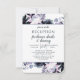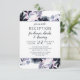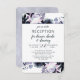 Design de Flor exuberante em Aquarela Floral Noturna com Caules, Folhas, Folhagens pintados à mão. Azul naval colorido, azul empoeirado, cinza escuro quase preto e toques de rosa Mauve. Com elementos de linha desenhados à mão, Fontes de letra cursiva chic com pinceladas, Moldura de Glitter Prateado e Borda floral Elegante - Convite de Recepção de Casamento!