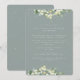 Um convite de recepção de casamento azul-esverdeado elegante para recepções que acontecem algum tempo após a cerimônia ou após uma fuga. Apresenta uma borda de snowberries pintadas à mão e eucalipto e uma dispersão de pontos. Todo o texto é totalmente editável. Este cartão está disponível com uma foto no verso, com desenhos botânicos alternativos e em cores diferentes. Por favor, visualize a Coleção na minha loja para ver todas as opções e itens coordenados.
