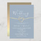 Celebre o seu amor com este convite de recepção de casamento elegante em azul empoeirado e dourado. Com um design de coração de corda estiloso e detalhes dourados delicados, este convite é perfeito para celebrações de casamento íntimo ou fugas românticas. Personalize-o com seus nomes, data e detalhes da recepção para um toque lindamente personalizado.