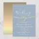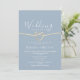 Celebre o seu amor com este convite de recepção de casamento elegante em azul empoeirado e dourado. Com um design de coração de corda estiloso e detalhes dourados delicados, este convite é perfeito para celebrações românticas de casamento íntimo ou fuga romântica. Personalize-o com seus nomes, data e detalhes da recepção para um toque personalizado encantador.