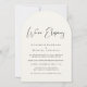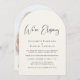 Anúncio elopemento elegante em forma de arco de natas claras e convite de recepção de casamento com "Estamos Elopando" em um roteiro chic, seus nomes em tipografia elegante de serifa, e seus detalhes de convite de recepção em letras simples e modernas. No verso, carregue sua foto e insira seu endereço no site do casamento para criar um código QR para seus convidados digitalizarem para RSVP on-line e obter detalhes do casamento, como acomodações.