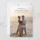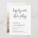 Um anúncio de casamento e convite de recepção moderno e mínimo. A frente desta placa apresenta "alegremente sempre após a festa" em um roteiro de caligrafia, com os nomes dos casais e os detalhes de celebração alinhados à esquerda abaixo. Um simples convite de casamento preto e branco com tipografia elegante. O reverso das cartas tem uma foto de sangria de cheio, com os nomes dos casais em uma tipografia de serifa em negrito e sua data de casamento abaixo. O texto pode ser editado para uma cerimônia de renovação de votos, sequela de casamento, aniversário, poste elopemento ou janto. Perfeito para casais que fugiram, tiveram uma pequena cerimônia privada ou um microcasamento, mas ainda querem celebrar com familiares e amigos. Veja a coleção ligada nesta página para itens correspondentes ou visite a nossa loja para obter mais designs de convite de casamento!