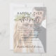 Elegante anúncio de casamento íntimo e privado e convite de recepção pós-casamento para anunciar seu casamento à família e amigos e convidá-los para uma recepção ou festa pós-casamento. O anúncio e convite de casamento personalizados sobrepõem a foto do dia do seu casamento, e "Festa Felizes para Sempre" é escrito em uma mistura de tipografia simples e um script moderno com floreios.