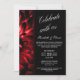 Um convite de celebração pós-casamento personalizado moderno com foto floral vermelha e preta.