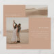 Cartão de Convite de Recepção de Casamento de Fuga com 2 Fotos Bege Moderno. Personalize este cartão de anúncio de casamento de terracota/bege minimalista e elegante com duas das suas fotos de casamento favoritas na frente e no verso, e adicione sua mensagem de fuga, e todas as informações da recepção de casamento para os convidados.