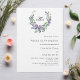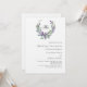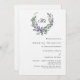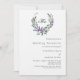 Um fundo branco decorado com uma flor de lavanda e uma coroa verde de eucalipto, crista. Personalize e seu monograma, nomes e detalhes.