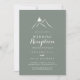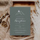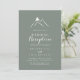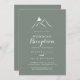 Este convite à recepção de casamento da silhueta branca verde é perfeito para uma festa de elopeamento poste rústica. O design apresenta montanhas limpas pintadas manualmente. As placas RSVP são vendidas separadamente ou você pode usar os detalhes RSVP na parte traseira ou na parte inferior da placa.