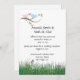 Convites de recepção somente de pássaros amorosos rosa e azul fofos. Pássaros amorosos rosa e azul em um galho com gramíneas e flores na parte inferior. As informações de RSVP estão incluídas no verso, mas se você preferir um RSVP separado, por favor envie um e-mail para shutterbug600@yahoo.com