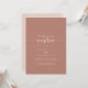 Este convite à recepção de casamento de terracota da caligrafia é perfeito para uma festa rustica de elopeamento poste. O design simples e elegante apresenta a tipografia de scripts clássicos e de rico. As placas RSVP são vendidas separadamente ou você pode usar os detalhes RSVP na parte traseira ou na parte inferior da placa.