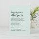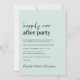 Mínimo convite moderno à recepção de casamento verde-menta, com "Felizmente Nunca Depois da Festa" numa mistura de uma escrita contemporânea e uma tipografia ousada. Personalize sua mensagem e convite e adicione seus nomes em um script semelhante a assinatura. No verso, adicione sua foto e insira o endereço do seu site de casamento para criar um código QR para seus convidados digitalizarem para RSVP on-line e obter detalhes adicionais de casamento, como instruções e acomodações.