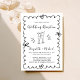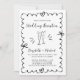 Convite de recepção de casamento preto e branco, inspirado na retrorreflecção, com uma estrutura ondulada adornada com arcos coquetes, ilustrações desenhadas à mão branca de corações e óculos de champanhe, e "Recepção de casamento" e os nomes da noiva e do noivo em um roteiro divertido e divertido.