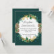INSERIR recepção de casamento PARA OS SEUS CONVITES. "Recepção de casamento de Folhagem da Floresta de Natal Dourada." Floresta profunda, fundo verde-caçador é emparelhado com folhagem de folha desenhada à mão em brilho dourado. Uma coroa feita a partir de simples ranhuras de folhas verdes e folhagem de bagas e verde-colado no topo termina ao largo da design. Toda arte foi pintada por uma artista reconhecida e licenciada internacionalmente, Audrey Jeanne Roberts, autora.