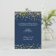 Desenho elegante de recepção de casamento (somente recepção) com motivo Azul Naval Brilho Falso Dourado Confete, nomes personalizados e texto de data. Impressione sua família e amigos com este design moderno e elegante.