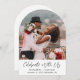 Elegante em forma de arco / anúncio de casamento privado e recepção ou convite de festas. A frente mostra sua fotografia, "Celebrar Conosco" em um roteiro chic, seus primeiros nomes, sua data de casamento e sua localização em uma simples tipografia moderna. No verso, você pode personalizar seu anúncio de casamento ou elopeio e sua recepção ou convite de festas e adicionar seus nomes em um roteiro semelhante a assinatura.