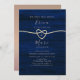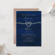Convide seus convidados para celebrar com estilo com este convite de recepção de casamento rústico chic azul marinho. Com um design moderno com texturas de madeira e um coração de corda dourada romântico, este cartão é perfeito para casais que hospedam uma recepção após uma cerimônia privada. Uma maneira sofisticada e personalizada de compartilhar os detalhes da sua noite especial.