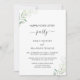 Convite Simples de Recepção de Casamento com "Festa Feliz para Sempre" em tipografia elegante, acompanhado de um raminho de folhagem de eucalipto no canto superior esquerdo e no canto inferior direito. O verso é uma tonalidade correspondente de verde sálvia. Este Convite de Recepção de Casamento moderno é ótimo para casais já casados que desejam celebrar com amigos e familiares após uma fuga romântica.