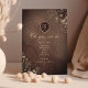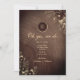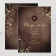 Abrace o charme dos anos passados com nosso convite de recepção de casamento em madeira rústica country vintage. Com um monograma delicado no topo de uma textura de madeira quente, entrelaçado com renda floral boho dourada, promete uma celebração encantadora de amor e herança.