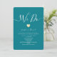 Apresentamos o nosso convite de micro-casamento chique e minimalista - ideal para a sua minimoniança única. Com uma paleta de cores fresca e contemporânea de branco e azul-teal poeirado, este design exala sofisticação moderna. Um delicado coração de folha de ouro traz um toque de calor e doçura, representando perfeitamente o amor duradouro que você compartilha com seu parceiro. Criado para celebrações íntimas, este convite define o tom para uma cerimônia pessoal e emocionante, onde cada elemento fala da história do seu amor.