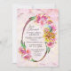 Um convite de casamento oval elegante e rústico com aquarela floral rosa para recém-casados.