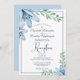 Convite de Recepção de casamento leve e de cor d'água, com azul empoeirado e azul marinho e verde na frente e cor azul empoeirada sólida no verso.ASSISTÊNCIA: Para obter ajuda sobre modificação/personalização do design, mudança de cor, transferência do design para outro produto ou se você quiser coordenar itens, entre em contato com o designer ANTES DE ENCOMENDAR através da guia Zazzle Chat MESSAGE ou por email em makeitaboutyoustore@gmail.com.