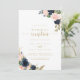 Convite Recepção de Casamento Floral Azul Marinho com Beij