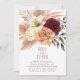Convite de recepção de casamento floral boêmio de terracota moderno e elegante com flores de aquarela adoráveis e grama pampas.