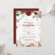 Este convite de recepção de casamento floral colorido rústico dourado é perfeito para uma festa simples após o casamento. O design apresenta flores marsala, rosa, blush, burgundy e douradas pintadas à mão com folhas verdes dispostas em belas grinaldas. Cartões de RSVP são vendidos separadamente, ou você pode adicionar os detalhes de RSVP na parte de trás ou na parte inferior do cartão.