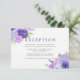 Cartões de recepção de casamento florais em aquarela com a cor do ano de 2018 violeta ultra com tons de roxo e sálvia verde acentos. As flores incluem hortênsias, lavanda, peônias e rosas.