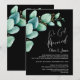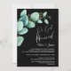 Convide seus amigos e entes queridos para a recepção após o casamento com este convite preto de folhas de eucalipto verde aquarela para celebrar seu casamento recente.