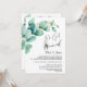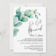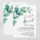 Convide amigos e familiares para a recepção após o casamento com este convite de folhas de eucalipto verde aquarela para celebrar seu casamento recente.