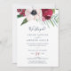 Este cartão de recepção de casamento furtivo de brisa tropical é perfeito para uma festa pós-casamento furtivo elegante de primavera ou verão. O design floral apresenta flores vermelhas, burgundy, rosadas e brancas em um leito de eucalipto aquarela e folhagens tropicais com um clima relaxado havaiano. Cartões de RSVP são vendidos separadamente.