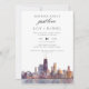 Este convite de recepção de casamento com aquarela da paisagem urbana de Chicago, 'nada sofisticado, apenas amor', pode ser personalizado com suas informações em tipografia chic. Criado por Thisisnotme©