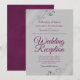 Este convite simples é projetado para convidados convidados para a recepção, mas não para a cerimônia de casamento em si. Possui um design elegante e sofisticado com letras em magenta, roxo cassis ou cor de amora em um fundo cinza e caracóis e espirais ornamentais de prata cinza em folha falsa nos cantos. Uma maneira linda de convidar seus amigos e familiares para celebrar com você!